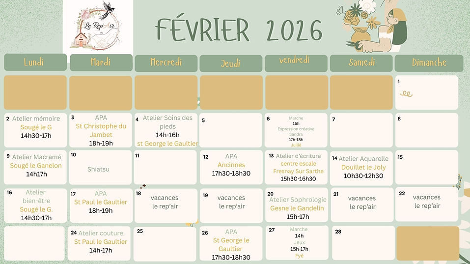 Plannings des ateliers et des évènements de l'Association